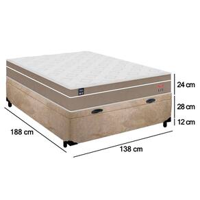 Cama Box Baú Casal Suede + Colchão Lis Molas Ensacadas Plumatex 138x188x64cm - Bege