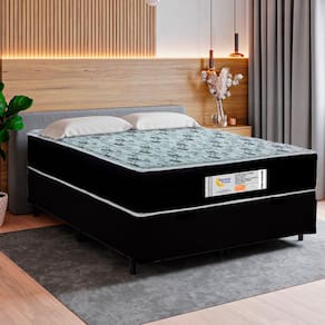 Cama Box Baú Casal Suede + Colchão Molas Ensacadas SerenePrime Sonnolux 138x188x69 - Preto