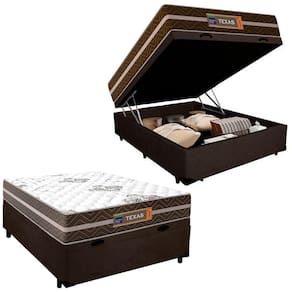 Cama Box Baú Casal Suede + Colchão Molas Ensacadas Texas Colchões 138x188x66cm Cor:marrom - Branco
