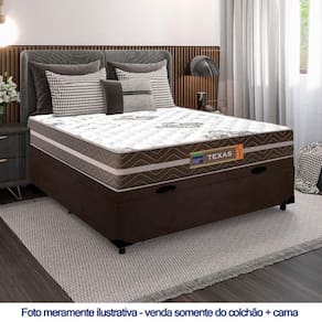 A Cama Box Baú Casal Suede + Colchão Molas Ensacadas Texas 138x188x66cm