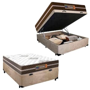 A Cama Box Baú Casal Suede + Colchão Molas Ensacadas Texas 138x188x67cm