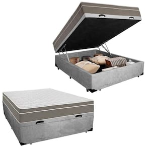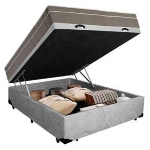 Cama Box Baú Casal Suede + Colchão SerenePrime Molas Ensacadas 138x188x69