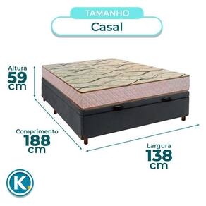 Suporta até 150kg, garantindo firmeza e durabilidade para diferentes perfis Base baú casal com 37cm de altura e amplo espaço interno para organização