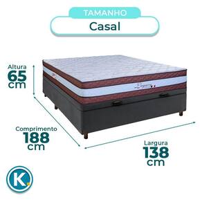 Suporte de até 150kg, ideal para quem busca firmeza e durabilidade Base baú casal com 37cm de altura e amplo espaço interno para organização