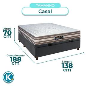 Suporte de até 120kg por pessoa, ideal para uso diário com firmeza equilibrada Base baú casal com 37cm de altura e amplo espaço interno para organização