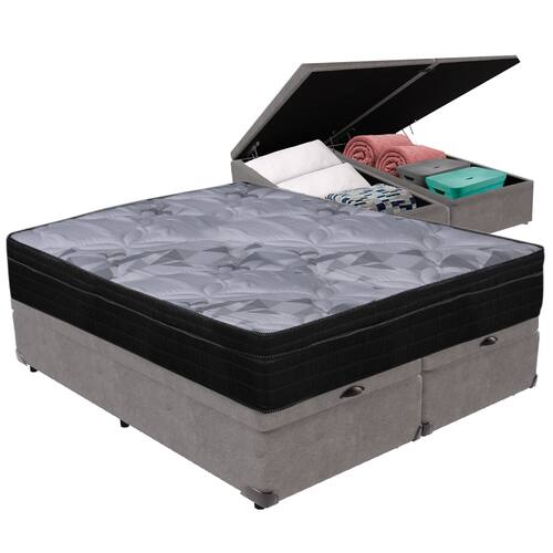 O conforto que sua casa precisa e a qualidade que você merece está na Kazamix!Redefina suas noites de sono com o Colchão Pampa Molas Ensacadas, projetado para oferecer máximo conforto e suporte. Suas molas ensacadas individualmente garantem estabilidade, minimizando vibrações e proporcionando um descanso tranquilo. O Ortopillow com tecido em poliéster de alta resistência e bordado matelassê acrescenta uma camada extra de maciez e conforto. Com tratamento antiácaro, antifungo e tecnologia No Turn, é ideal para quem busca praticidade e um ambiente de sono mais saudável. Este colchão combina qualidade e durabilidade para oferecer uma experiência de descanso incomparável.Modelo: Pampa Marca: OrtobomTamanho: QueenDimensões: 158x198X24 (Largura x Comprimento x Altura)Conforto: MacioSistema: Molas ensacadas Pillow: Euro PillowPeso Máximo recomendado: 120 kg (Por pessoa)Proteções: Antiácaro, antialérgico, antifungo, antimofoGarantia: 1 ano pelo FabricanteO conforto que sua casa precisa e a qualidade que você merece está na KazamixAproveite cada metro quadrado do seu dormitório com a Cama Box Baú!Projetada com madeira de reflorestamento reforçada, a Cama Box Baú é a escolha ideal para quem busca otimização de espaço e praticidade na organização do dia a dia.Com um baú generoso, ela oferece a solução perfeita para armazenar travesseiros extras, cobertores, malas e muito mais. Além disso, sua estrutura robusta suporta até 150 kg por pessoa, garantindo a sustentação ideal para o seu colchão e prolongando sua vida útil.O pistão a gás robusto proporciona uma abertura suave e segura do baú, oferecendo praticidade e resistência no uso diário. Para completar, o acabamento de alta qualidade combina perfeitamente com qualquer estilo de decoração, agregando elegância e versatilidade ao seu ambiente.Não perca tempo! Adquira agora mesmo sua Cama Box Baú e diga adeus à falta de espaço e desorganização.Marca: KazaMixModelo: BaúCor do Box: CinzaTamanho: QueenDimensões: 158X198X37 (Largura x Comprimento x Altura) Estrutura: MadeiraPeso máximo recomendado: 150 kg (Por Pessoa)Altura do Box: 32 cm Altura dos Pés: 5 cm Altura total: 37 cm Garantia: 03 mesesSelo Ecologicamente CorretoAtenção: Antes de finalizar sua compra, certifique-se de que as dimensões do produto sejam adequadas para serem transportadas pelos elevadores, portas, escadas e corredores de sua residência. Ressaltamos que não nos responsabilizamos pelo transporte do produto por meios específicos, como escadas, guinchos ou içamentos.