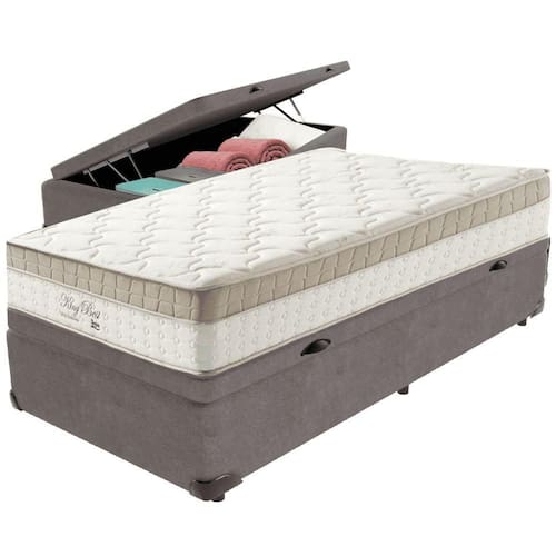 Com um baú generoso, ela oferece a solução perfeita para armazenar travesseiros extras, cobertores, malas e muito mais. Além disso, sua estrutura robusta suporta até 150 kg por pessoa, garantindo a sustentação ideal para o seu colchão e prolongando sua vida útil.