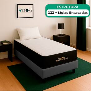 A tecnologia que a sua casa merece está na V-Store! O Conjunto Colchão Orthopedic + Base Box Baú Bravus da V-Store une conforto e funcionalidade. O colchão, com espuma D33 e suporte extra firme, oferece alinhamento ideal e proteção contra ácaros, alergias e fungos. A base box baú, com estrutura resistente e espaço interno, combina organização e estilo, otimizando seu dormitório com praticidade e elegância.Característica Do Colchão: Modelo: OrthopedicMarca: V-StoreTamanho: SolteiroDimensões: 78x30x188 (Largura x Altura x Comprimento)Conforto: Extra FirmeSistema: EspumaPillow: Não se aplicaPeso Máximo recomendado: 110 kg (Por pessoa)Proteções: Antiácaro, antialérgico, antifungo, antimofoGarantia: 12 Meses (Espuma)Característica Da Base: Marca: V-StoreModelo: BravusCor do Box: CinzaTamanho: SolteiroDimensões: 78x44x188 (Largura x Altura x Comprimento)Estrutura: MadeiraPeso máximo recomendado: 150 kg (Por Pessoa)Altura do Box: 38 cmAltura dos Pés: 6 cmAltura total: 44 cmGarantia: 12 Meses (Estrutura) / 3 meses (Tecido)Selo Ecologicamente CorretoAtenção:- Antes de finalizar sua compra, recomendamos que verifique se as dimensões do produto são adequadas para serem transportadas pelos elevadores, portas, escadas e corredores de sua residência. Ressaltamos que não nos responsabilizamos pelo transporte do produto por meios específicos, como escadas, guinchos ou içamentos.- É possível que hajam leves variações de cor de acordo com o dispositivo que está sendo utilizado como smartphones, computadores, monitores e outros.