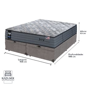 Bem-vindo(a) ao nosso catálogo! Apresentamos a você uma descrição completa sobre esse produto: A marca SealyEntre as personalidades que usam e usaram os colchões da marca Sealy estão a cantora Adele, Rainha Elizabeth II, a apresentadora Ellen DeGeneres e o jogador de basquete LeBron James. Atendendo também os hotéis da Disney, Copacabana Palace, Hard Rock Hotels e outros. Referência na fabricação de colchões de alta qualidade, a empresa foi fundada em 1881. Investindo em tecnologia de ponta e materiais premium para produzir produtos duráveis e confortáveis, é reconhecida por diversos consumidores famosos em todo o mundo. Modelo: JoyNível de Conforto: FirmeSuporte de peso: 240 quilos (120kg por pessoa)Molas: Mola EnsacadasPillow: Pillow FlatEspuma: D28 kg/m³Altura: 26cmTecido: Malha Bordeaux: Com 315 g/m² e Jacquard de 165 g/m²"Transforme suas noites com o Colchão Joy Sealy de 26cm com Molas Ensacadas! Em um mundo agitado, a qualidade do sono é essencial para uma vida melhor. Este colchão oferece uma experiência incomparável, com molas ensacadas individualmente para um isolamento de movimento superior, garantindo um descanso sem interrupções. Com 26 cm de altura, é perfeito para facilitar o deitar e levantar, proporcionando conforto e praticidade. A tecnologia antiácaro e antibacteriana cria um ambiente de sono mais saudável, ideal para quem valoriza bem-estar e saúde. O tecido de malha Bordeaux, combinado com o Jacquard de alta qualidade, oferece um toque luxuoso e durabilidade. A base antiderrapante mantém o colchão estável, enquanto o design Pillow Flat proporciona conforto sem o volume dos pillow tops tradicionais. Com suporte médio-firme e capacidade para até 120kg, o Colchão Joy Sealy é ideal para todos os biotipos, oferecendo um sono restaurador e personalizado. Invista no seu sono e transforme suas manhãs com o Colchão Joy Sealy! A escolha perfeita para quem busca qualidade, conforto e inovação. Não perca a chance de melhorar sua qualidade de vida—adquira o seu hoje mesmo! "Além de tudo, esse produto acompanha a Cama Box com Baú da Kaza Mix e assim se torna um conjunto perfeito para o seu quarto! Marca: Kaza MixCor do Baú: CinzaTamanho: QueenMaterial dos pés: MadeiraEstrutura: MadeiraPeso máximo recomendado: Até 150kg de cada ladoAbertura: Pistão a gásLargura: 158cmComprimento: 198cmAltura total: 42cmAltura interna Baú: 27cmAltura dos pés: 6cmGarantia: 03 mesesSelo Ecologicamente CorretoAtenção: - Antes de finalizar sua compra, recomendamos que verifique se as dimensões do produto são adequadas para serem transportadas pelos elevadores, portas, escadas e corredores de sua residência. Ressaltamos que não nos responsabilizamos pelo transporte do produto por meios específicos, como escadas, guinchos ou içamentos. - É possível que hajam leves variações de cor de acordo com o dispositivo que está sendo utilizado como smartphones, computadores, monitores e outros.