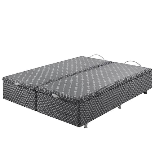 A Cama Box Baú Coimbra é composto por Madeira maciça de eucalipto 100% reflorestada e chapa de fibra branca contendo no lado superior tecido antiderrapante 100% Poliéster - Gramatura 93g/m e Revestimento Lateral 58% Algodão e 42% Poliéster com gramatura de 235g/m. Espaço interno de 24 cm de altura e pés de Alumínio de 6cm.