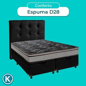 Cama Box Bau + Colchão Casal D28 Conforto Paropas + Cabeceira Estofada