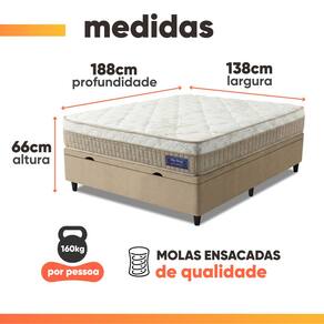 MODELO: Cama Box Baú Colchão Casal Molas Ensacadas Euro In Natural Confort 138x188x66cm Apolo