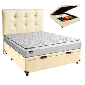 Cama Box Bau + Colchão Casal Molas Ensacadas Hanover Inducol + Cabeceira Estofada - Nature | Off White