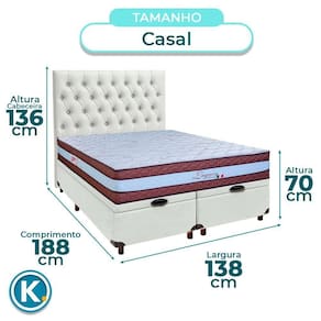 Suporte de até 150kg, ideal para quem busca firmeza e durabilidade Base baú Casal com 42cm de altura e amplo espaço interno para organização