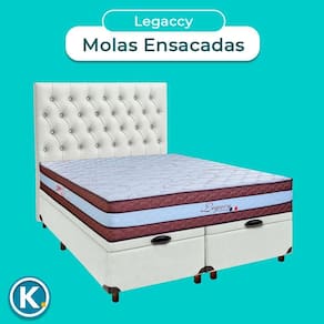 Cama Box Bau + Colchão Casal Molas Ensacadas Legaccy Paropas + Cabeceira Estofada Conjunto Casal Colchão Legaccy + Cama Box Bau Colchão Casal com 28cm de altura, oferecendo conforto elevado e visual moderno
