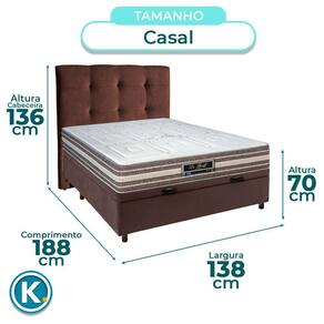 Suporte de até 120kg por pessoa, ideal para uso diário com firmeza equilibrada Base baú casal com 37cm de altura e amplo espaço interno para organização