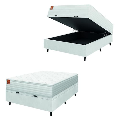 MODELO: Cama Box Baú Colchão Casal Molas Ensacadas Real 138x188x68cm Linho