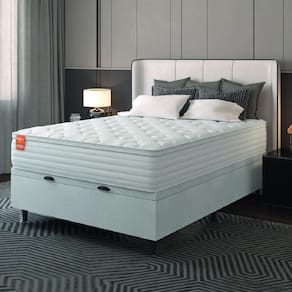 REVESTIMENTO INTERIOR: Molejo estrutural em molas ensacadas individualmente, que permitem que o colchão suporte até 130kg por pessoa, oferecendo conforto e estabilidade durante o sono.