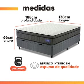 ITENS INCLUSOS: 1 colchão casal 1,38m, 1 box baú casal 1,38 m