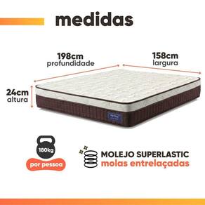 REVESTIMENTO INTERNO: Estrutura com molas Superlastic de alta resistência, projetadas para oferecer suporte firme e progressivo. Suportam até 180 kg por pessoa, garantindo excelente estabilidade, durabilidade e conforto durante o sono.