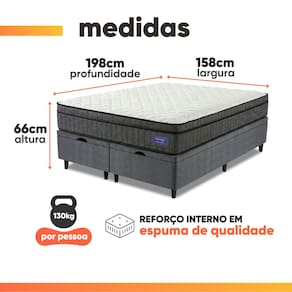 ITENS INCLUSOS: 1 colchão queen 1,58m, 2 box baú 0,79m