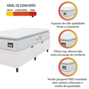 MODELO: Cama Box Baú Colchão Solteiro Espuma D45 Lazio Pillow Top 88x188x70cm Linho
