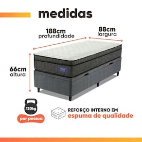 Cama Box Baú Colchão Solteiro Ortopédico D33 Euro Pillow Ultra 88x188x66cm Cinza