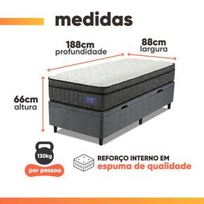 ITENS INCLUSOS: 1 colchão solteiro 0,88m, 1 box baú solteiro 0,88 m