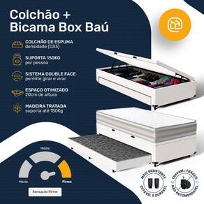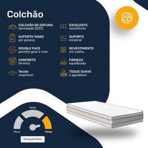 O sistema Double Face permite virar o colchão, aumentando a vida útil. O tampo em Malha melhora o conforto térmico e seu revestimento lateral conta com um tecido respirável(área 3D), o modelo suporta até 120kg por pessoa.