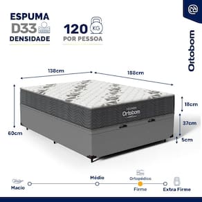 Além do colchão, a base baú incorporada aumenta a funcionalidade do seu quarto, oferecendo um espaço de armazenamento adicional. Construída com madeira tratada, tornando-a não apenas prática mas também durável e resistente. Este conjunto é a solução perfeita para quem busca maximizar o conforto e a utilidade em espaços compactos.