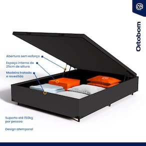 Além do colchão, a base baú incorporada aumenta a funcionalidade do seu quarto, oferecendo um espaço de armazenamento adicional. Construída com madeira tratada, tornando-a não apenas prática mas também durável e resistente. Este conjunto é a solução perfeita para quem busca maximizar o conforto e a utilidade em espaços compactos.