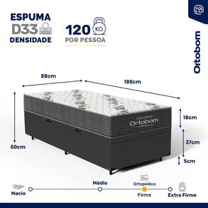 - Dimensões (larg. x comp. x alt.) Solteiro: 88x188x42cm.