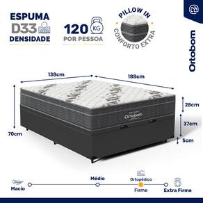 Buscando um colchão com conforto e suporte equilibrados? Nosso Colchão de Espuma D33, com pillow in para uma camada extra de conforto, é ideal para quem precisa de suporte firme. Suporta até 120 kg por pessoa, proporcionando uma base estável para um sono reparador.