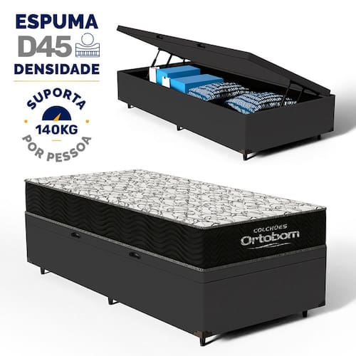 Além do colchão, a base baú incorporada aumenta a funcionalidade do seu quarto, oferecendo um espaço de armazenamento adicional. Construída com madeira tratada, tornando-a não apenas prática mas também durável e resistente. Este conjunto é a solução perfeita para quem busca maximizar o conforto e a utilidade em espaços compactos.