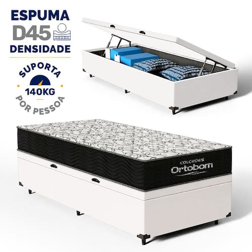 Além do colchão, a base baú incorporada aumenta a funcionalidade do seu quarto, oferecendo um espaço de armazenamento adicional. Construída com madeira tratada, tornando-a não apenas prática mas também durável e resistente. Este conjunto é a solução perfeita para quem busca maximizar o conforto e a utilidade em espaços compactos.