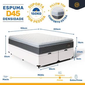 - Dimensões (larg. x comp. x alt.) Super King: 193x203x42cm(2 partes de 96cm).