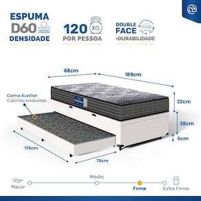 - Dimensões do produto (larg. x comp. x alt.) Solteiro: 88x188x44cm.