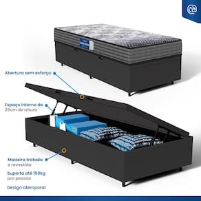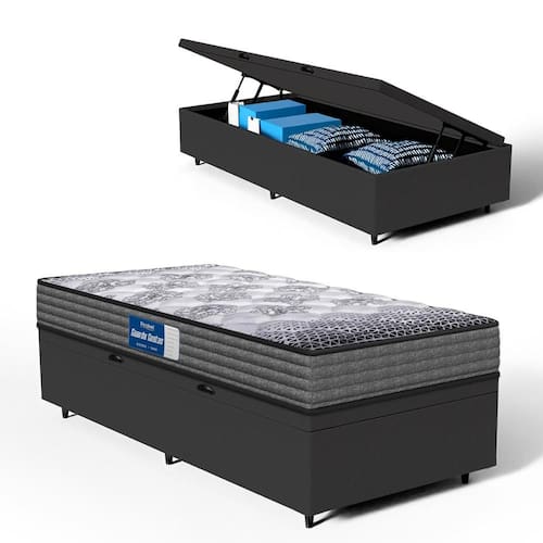 Além do colchão, a base baú incorporada aumenta a funcionalidade do seu quarto, oferecendo um espaço de armazenamento adicional. Construída com madeira tratada, tornando-a não apenas prática mas também durável e resistente. Este conjunto é a solução perfeita para quem busca maximizar o conforto e a utilidade em espaços compactos.