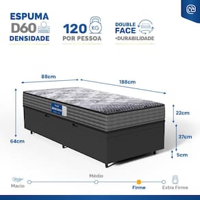 - Dimensões (larg. x comp. x alt.) Solteiro: 88x188x42cm;