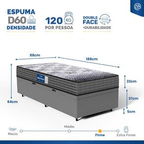 - Dimensões (larg. x comp. x alt.) Solteiro: 88x188x42cm;