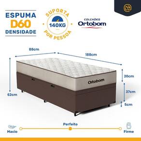 - Dimensões (larg. x comp. x alt.) Casal: 88x188x42cm;