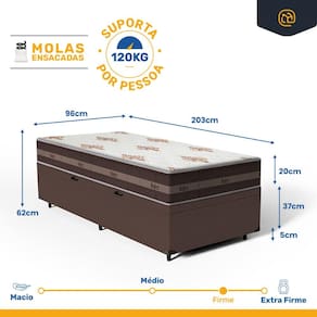 - Dimensões (larg. x comp. x alt.) Solteiro King: 96x203x42cm.