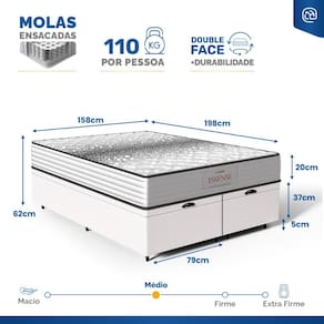 - Dimensões (larg. x comp. x alt.) Queen: 158x198x42cm Bipartido(2 Partes de 79);