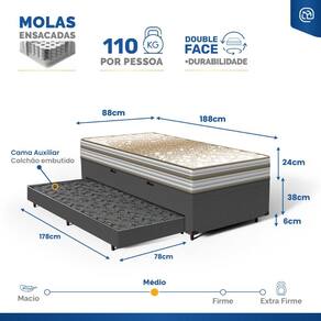 - Dimensões do produto (larg. x comp. x alt.) Solteiro: 88x188x44cm.