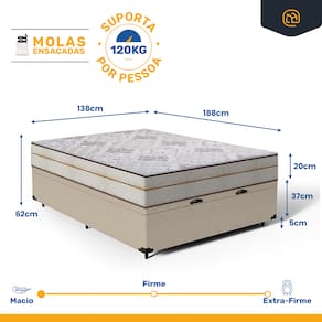 - Dimensões (larg. x comp. x alt.) Casal: 138x188x42cm;