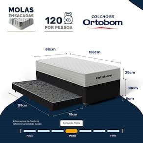 Madeira tratada (Base Baú), Malha (Tampo do Colchão), Espuma (Auxiliar)Vendido e entregue por Lucas Colchões