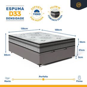 - Dimensões do produto (largura x comprimento x altura) Casal: 138x188x42cm