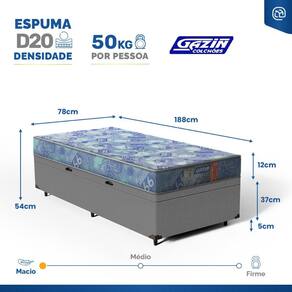 - Dimensões (larg. x comp. x alt.) Solteiro: 78x188x42cm.