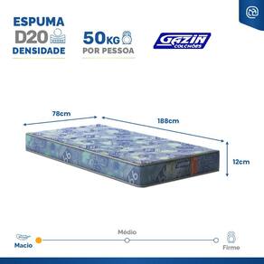 - Dimensões do produto (larg. x comp. x alt.) Solteiro: 78x188x12cm.
