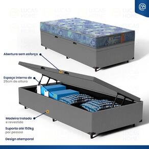 Além do colchão, a base baú incorporada aumenta a funcionalidade do seu quarto, oferecendo um espaço de armazenamento adicional. Construída com madeira tratada, tornando-a não apenas prática mas também durável e resistente. Este conjunto é a solução perfeita para quem busca maximizar o conforto e a utilidade em espaços compactos.